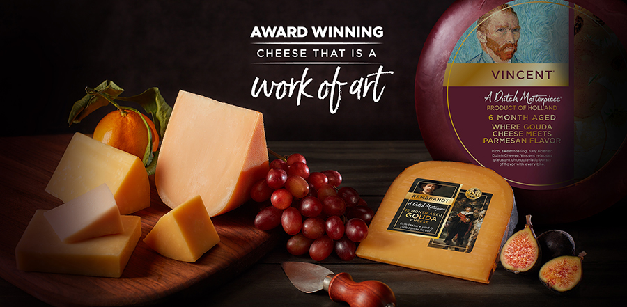 文森·威廉·梵谷(Vincent Willem van Gogh)是著名荷蘭畫家,深深影響了二十世紀藝術,其畫作也成為全球知名的藝術作品。基於這樣的靈感啟發,『荷蘭大師作品』(A Dutch Masterpiece)起司品牌因而誕生,並將這款荷蘭起司更名為梵谷起司(Vincent cheese),使起司與梵谷作品之間的獨特性、精緻性相結合,也紀念這位名畫家在荷蘭人心目中不朽的地位。