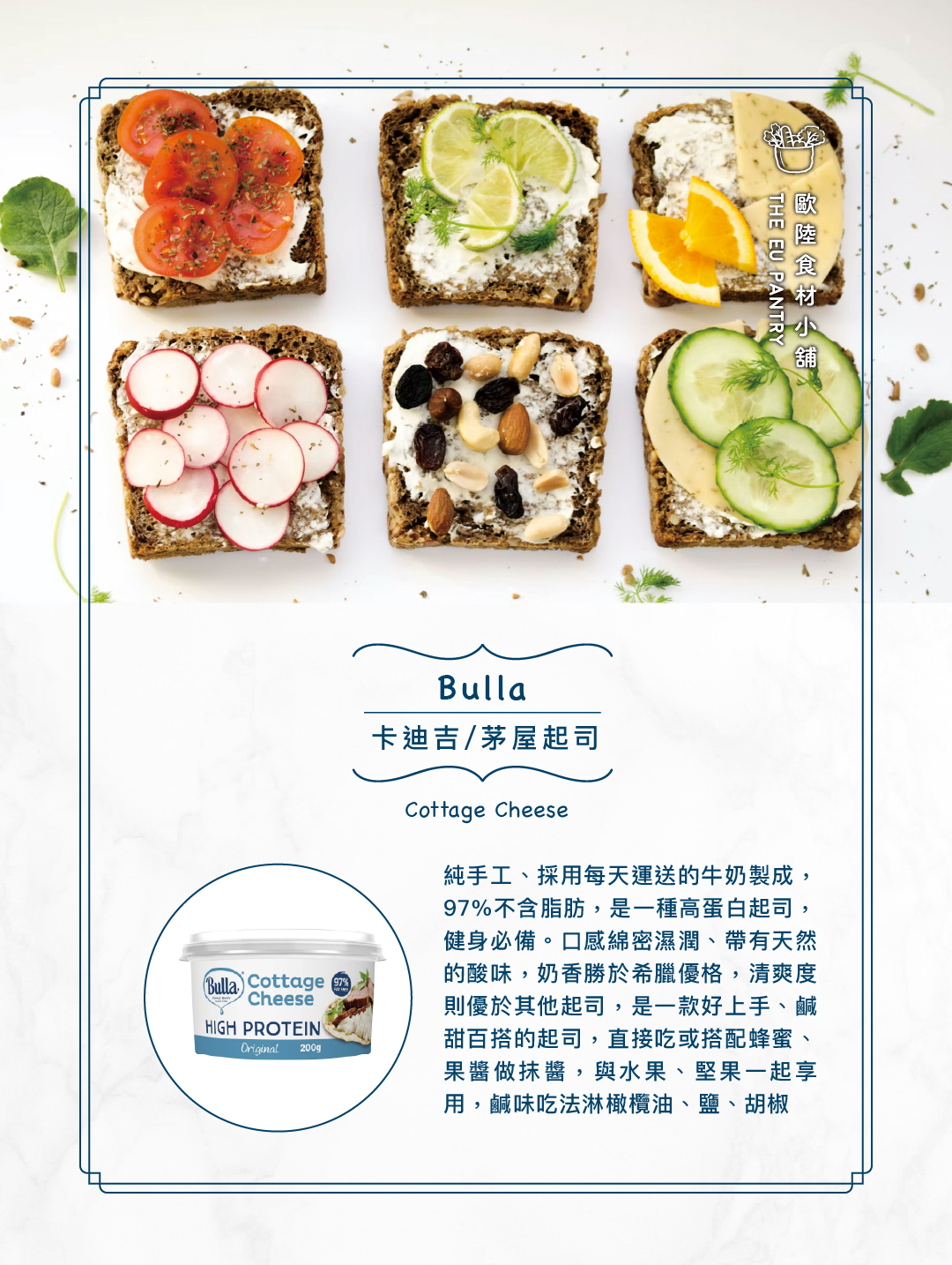 1. 茅屋起司可以單吃,也可用於製作三明治、點心、沙拉。