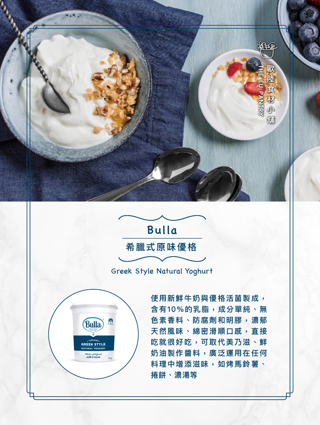 Bulla 布拉 希臘式原味優格 10%脂肪 1kg Greek Style Natural Yoghurt 濃郁天然風味