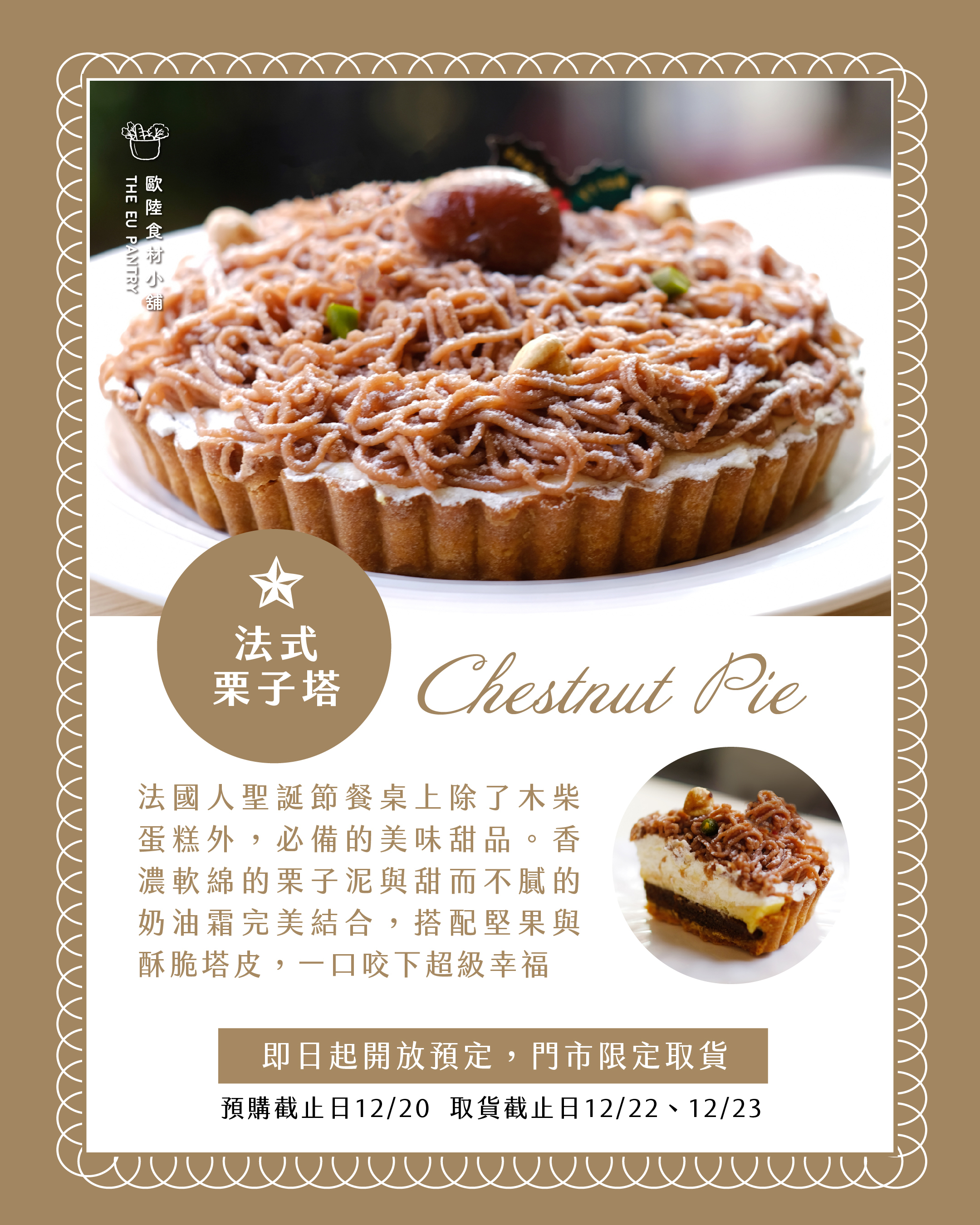 (需預訂) 6吋蒙布朗栗子塔(門市限定取貨) Chestnut tart 法式栗子塔