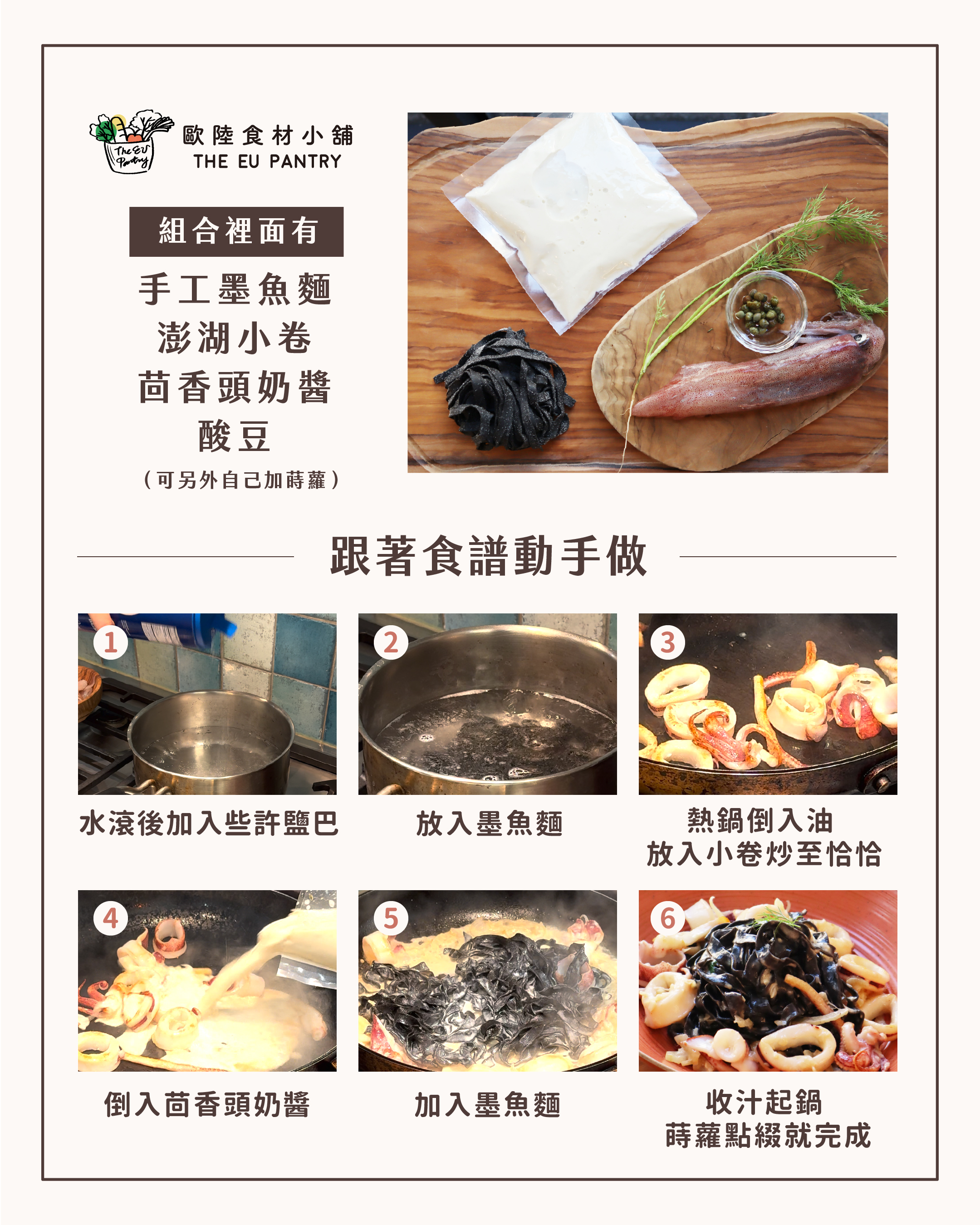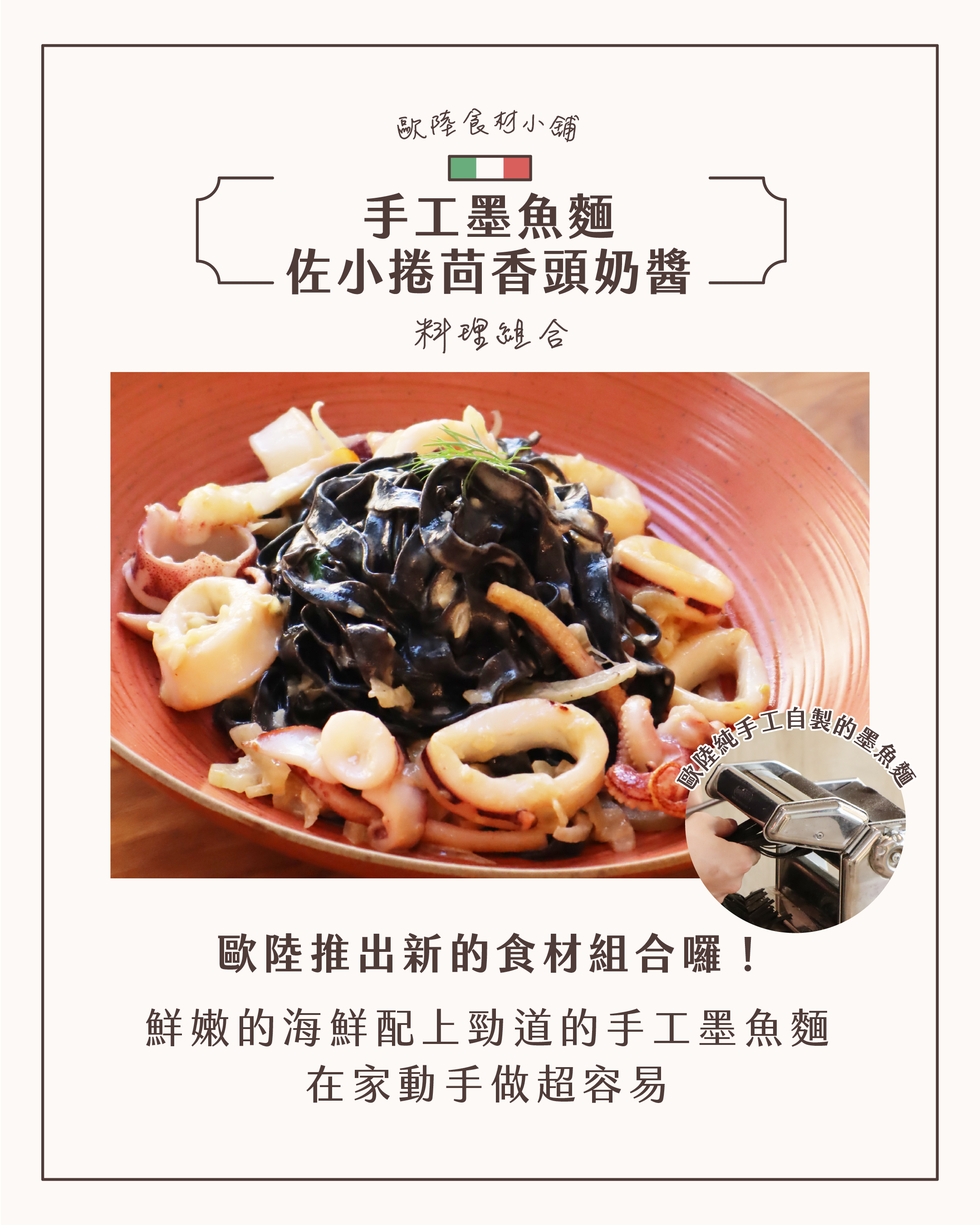 成份:義大利00號麵粉、蛋、墨魚汁、鹽