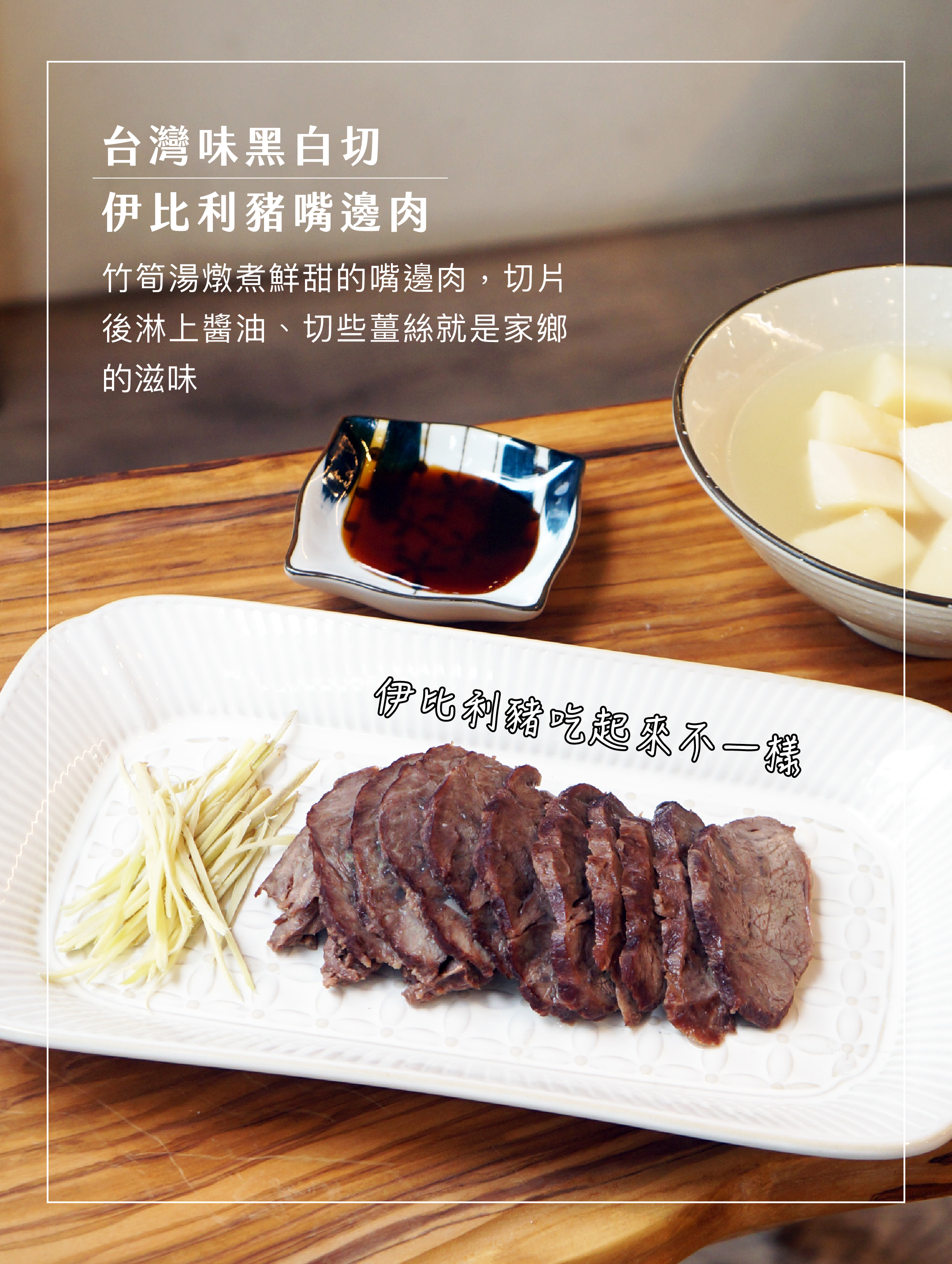 西班牙伊比利豬Ibérico Pig伊比利豬(Cerdo Ibérico)是原生於伊比利半島的珍貴豬種,外貌是黑色開蹄、尖鼻子、小頭、短頸和少毛,此外牠們的腿細長有力,有助於跋涉尋找食物;現今主要生長在西班牙西南部,從小在指定山區自然放養,吃野生香草、橄欖和橡木子;尤其是橡木子,造就了伊比利豬肉質純樸而芳香的特殊風味。伊比利豬不僅皮下脂肪豐厚,且脂肪還分布到肌肉之間,形成美麗的大理石紋。除了製成美味的火腿之外,還可製成風乾臘腸、新鮮香腸,或是以IQF急速冷凍技術封存的新鮮肉品系列,皆為國內外頂級餐廳、飯店御用食材