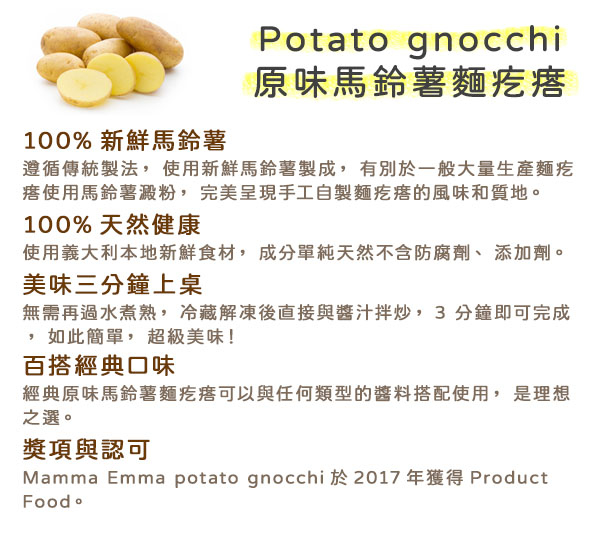 | 品名 | 原味馬鈴薯麵疙瘩 Potato Gnocchi |