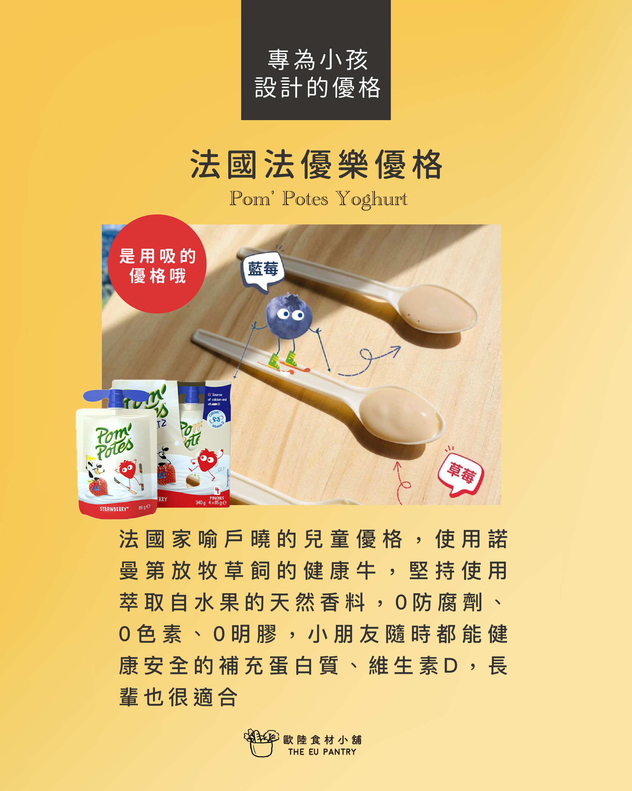草莓:優格(牛奶、乳酸菌)、糖、濃縮草莓泥(2%)、澱粉(木薯澱粉)、果膠、天然香料、維生素D2