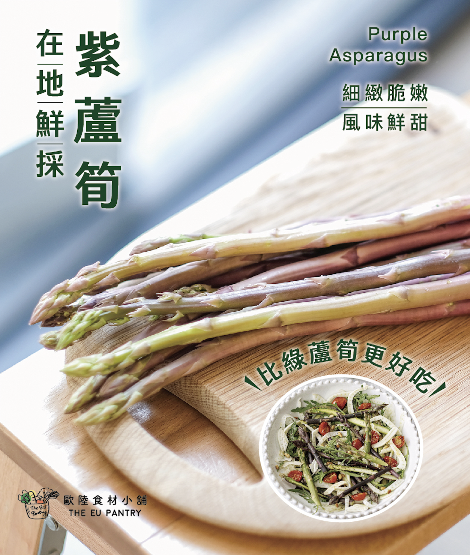 紫蘆筍纖維較少、含醣量高,吃起來比白、綠蘆筍更嫩且甜