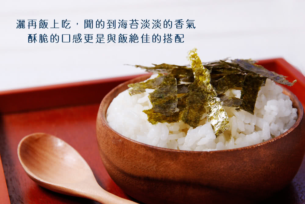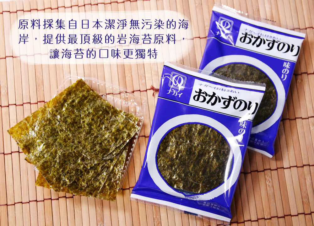 原料採集自日本潔淨無污染的海岸,提供最頂級的岩海苔原料,讓海苔的口味更獨特,酥脆的口感更是與飯絕佳的搭配