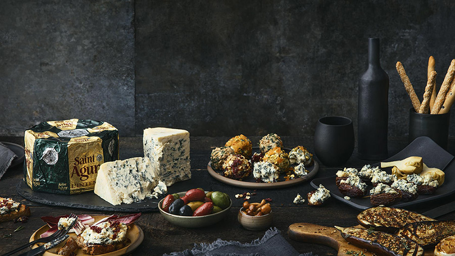 Saint Agur is a blue cheese made from pasteurised cow's milk in the village of Beauzac from the mountainous French region of Auvergne. Since 1988, the Bongrain Cheese Company has been manufacturing this double-cream cheese.