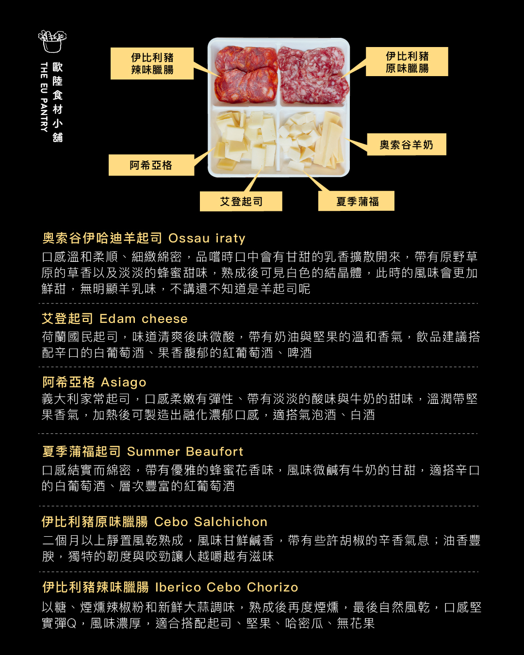 歐陸食材小舖嚴選不同的起司、臘腸,輕鬆享受多種風味,佐酒 聚餐 必備