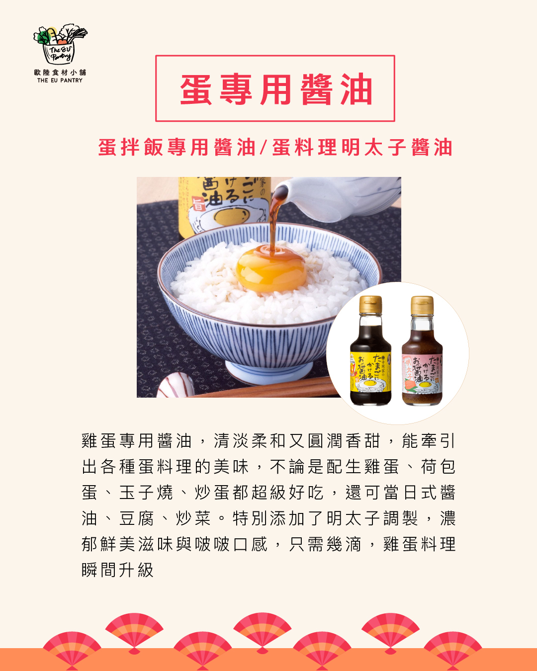 寺岡家引以為傲的「拌蛋醬油」,特別添加了明太子調製,濃郁鮮美滋味與啵啵口感,只需幾滴,不僅適合拌生蛋拌飯,也能讓炒蛋、煎蛋或蒸蛋,瞬間升級