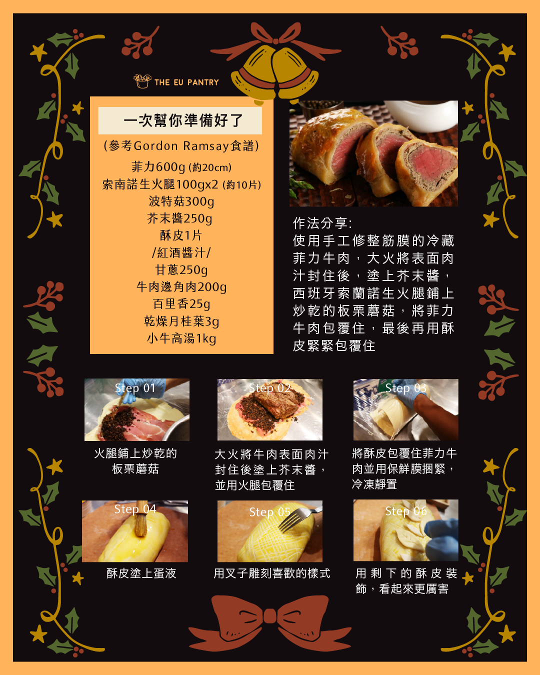 內含十種食材,跟著食譜動手做(參考Gordon Ramsay食譜),在家也能享受威靈頓牛排