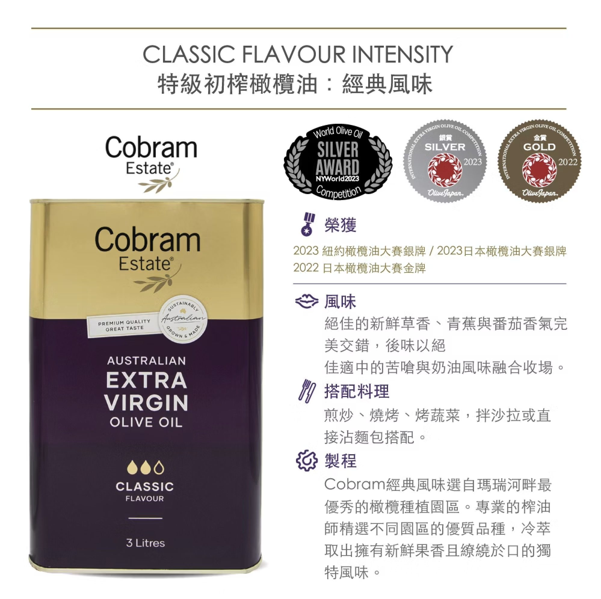 品名:澳洲Cobram Estate 特級初榨橄欖油(經典風味Classic)