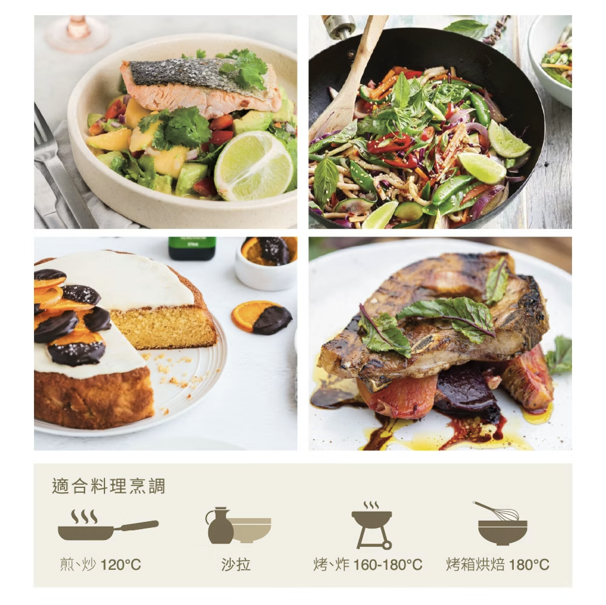 草香與番茄香氣完美交錯,後味以奶油風味收場,適合涼拌、熱炒、中高溫烹調,發煙點為200°C~210°C