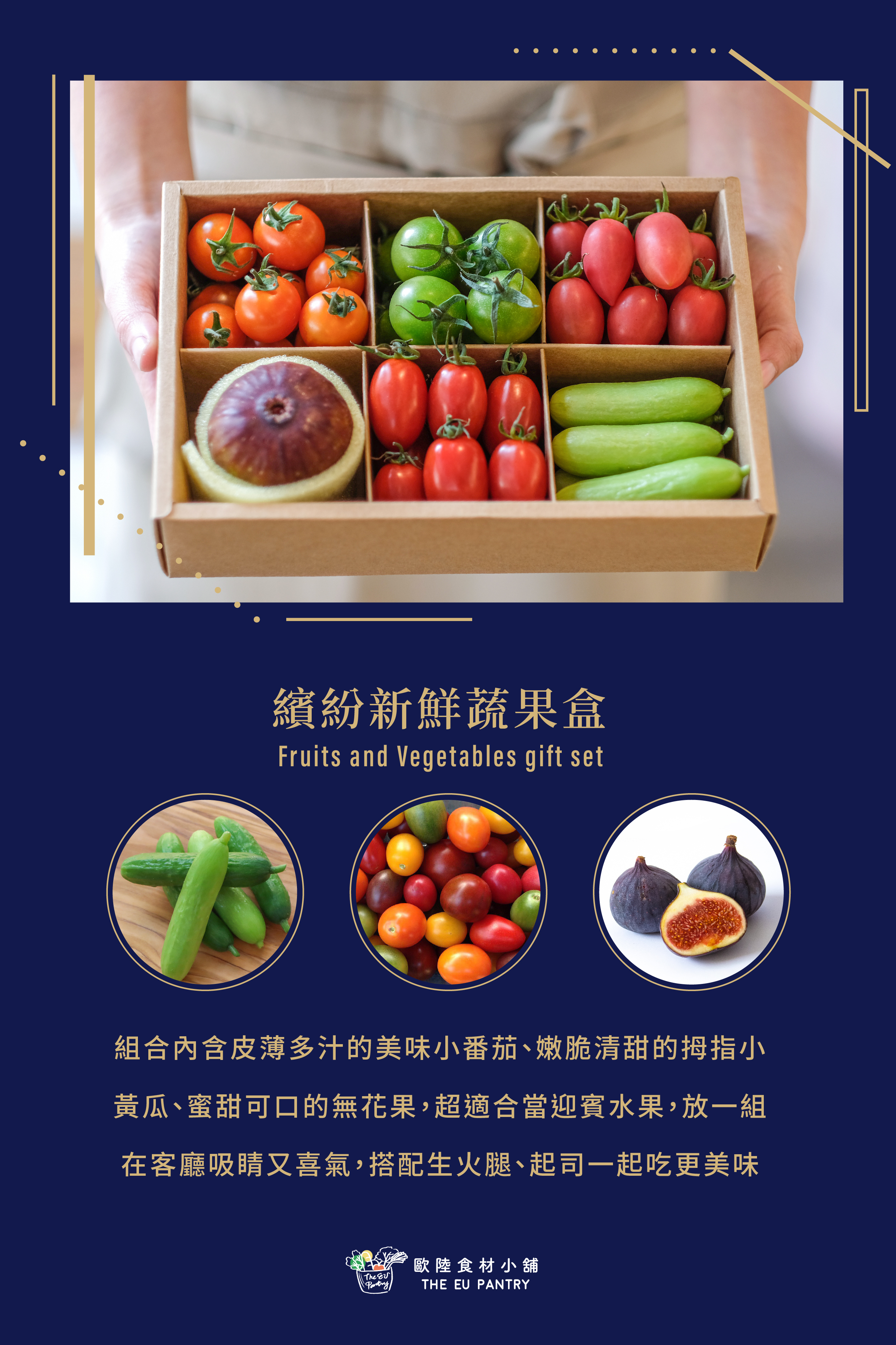 內含:彩色小番茄約500g、拇指水果小黃瓜約115g、 無花果一入約70g