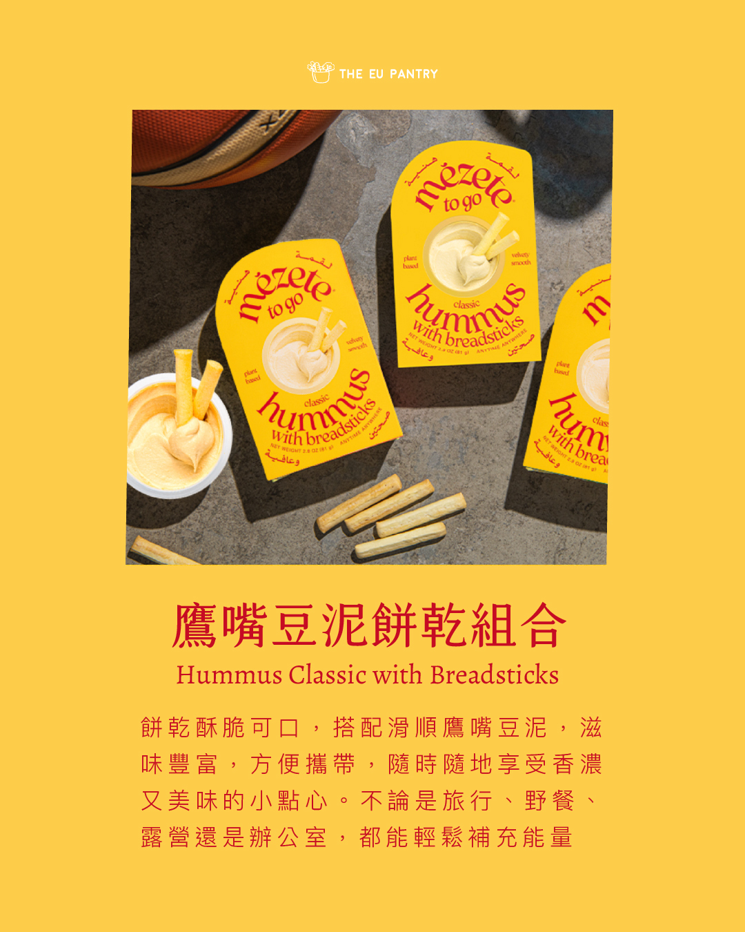 餅乾酥脆可口,搭配滑順鷹嘴豆泥,滋味豐富,方便攜帶,隨時隨地享受香濃又美味的小點心。不論是旅行、野餐還是辦公室,都能輕鬆補充能量