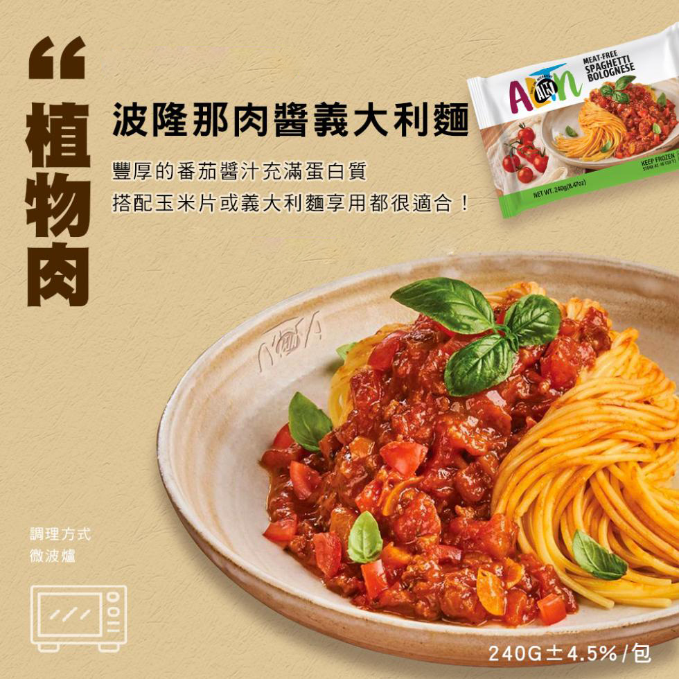 品名:植物肉波隆那肉醬義大利麵 五辛素