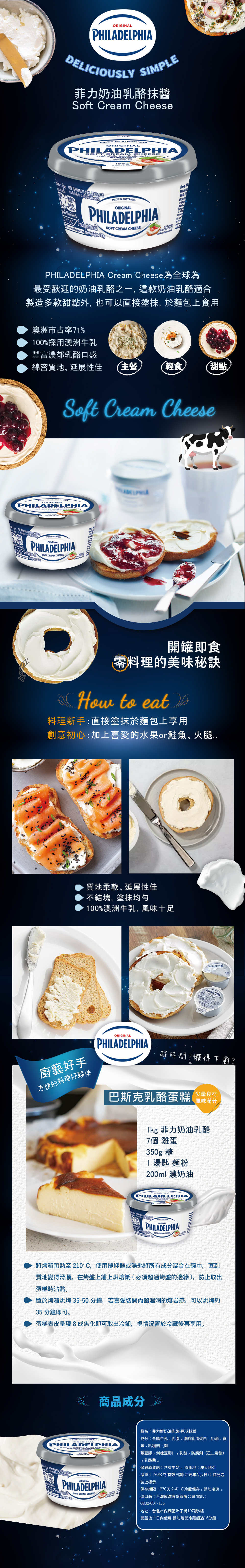 PHILADELPHIA鮮奶油乳酪抹醬,採用100%澳洲的新鮮牛奶和奶油製成。
