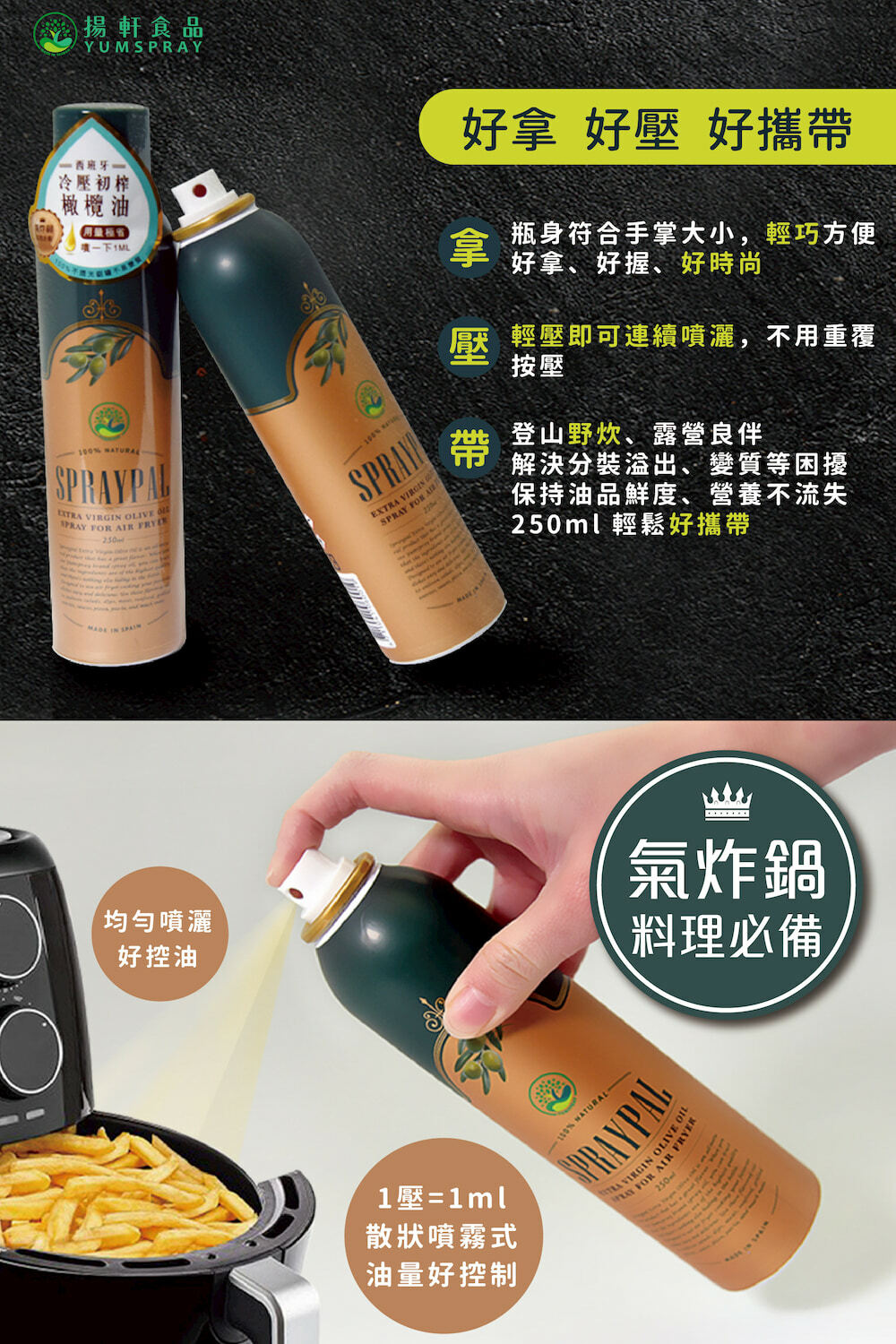 適用氣炸鍋、沙拉、拌麵、外出炒菜使用