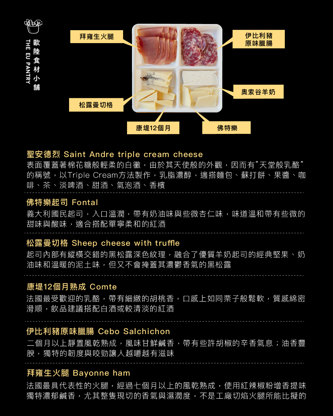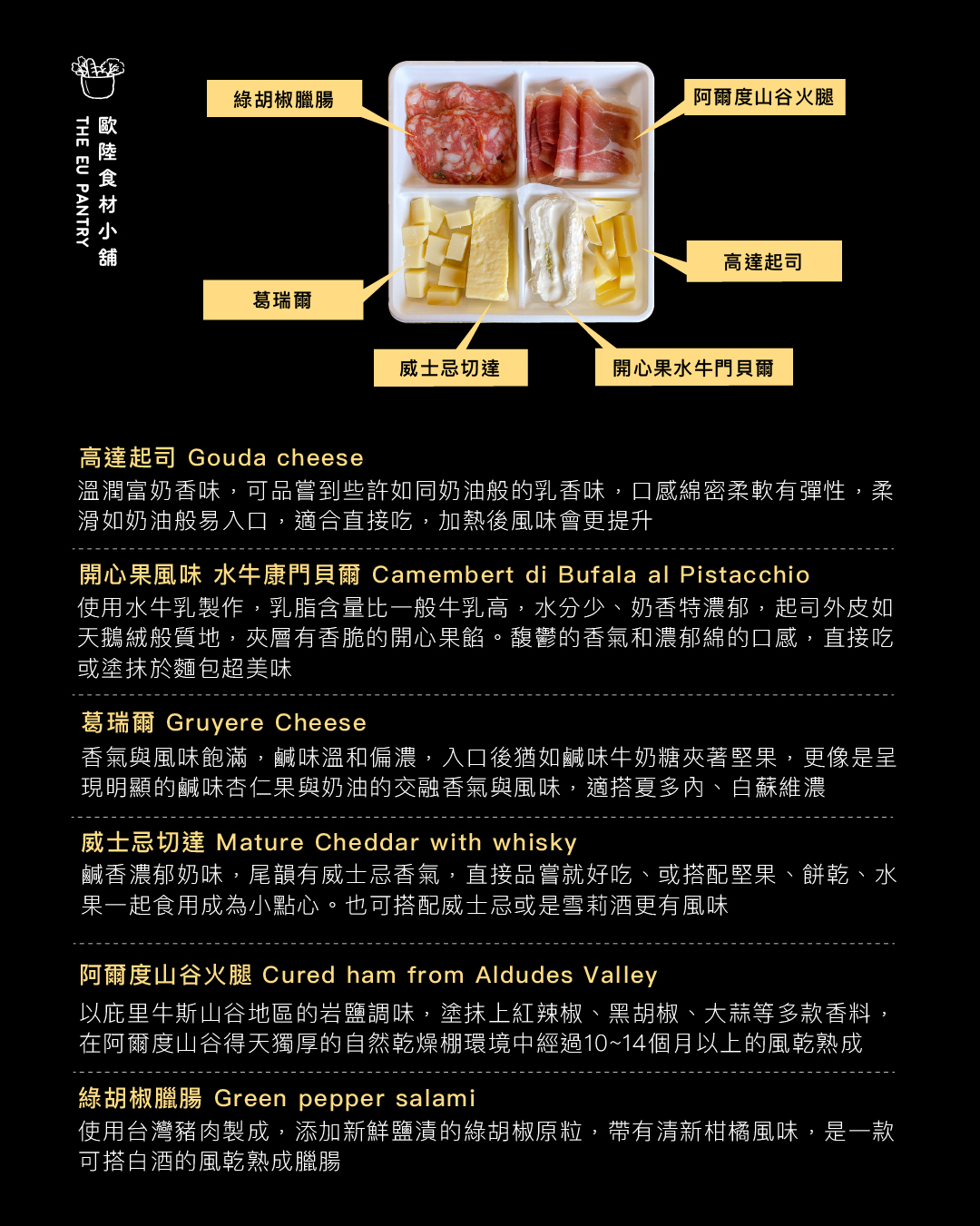 歐陸食材小舖嚴選不同的起司、臘腸,輕鬆享受多種風味,佐酒 聚餐 必備