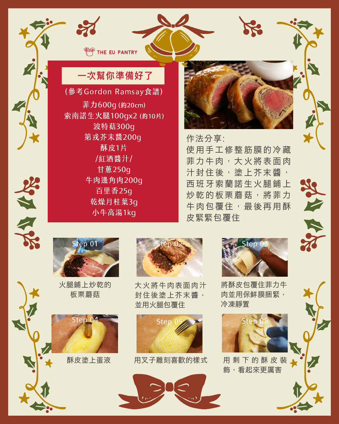 內含十種食材,跟著食譜動手做(參考Gordon Ramsay食譜),在家也能享受威靈頓牛排