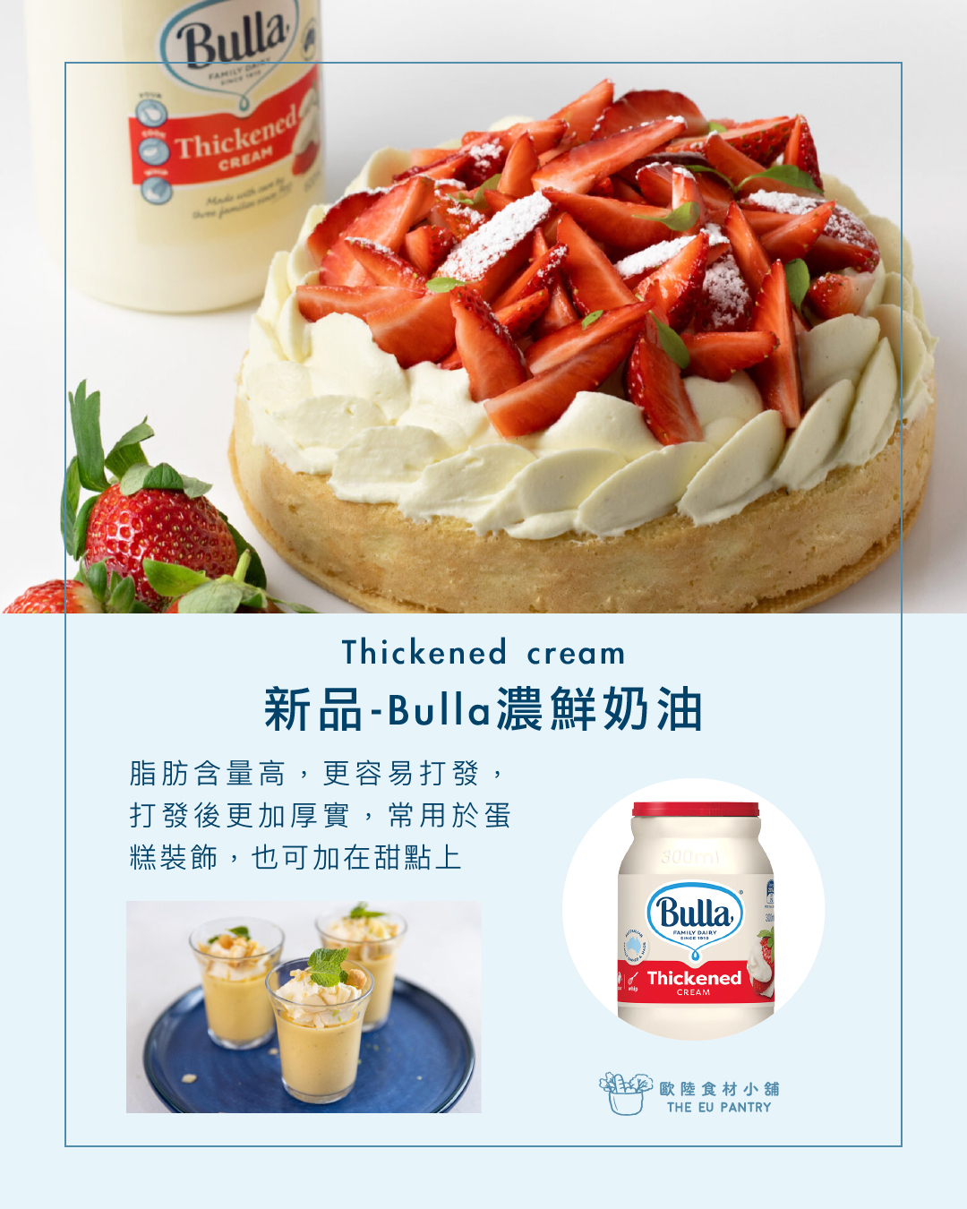 濃奶油脂肪含量高,更容易打發,打發後更加厚實,常用於蛋糕裝飾,也可淋在甜點上