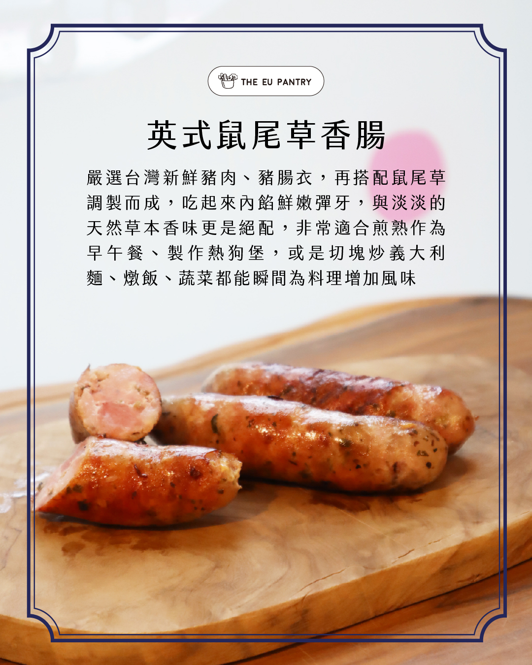 成份: 豬肉(台灣),豬背脂,豬腸衣,鹽,鼠尾草,大蒜粉,帕瑪森起司粉,保色劑:亞硝酸鈉,抗氧化劑:異抗壞血酸鈉