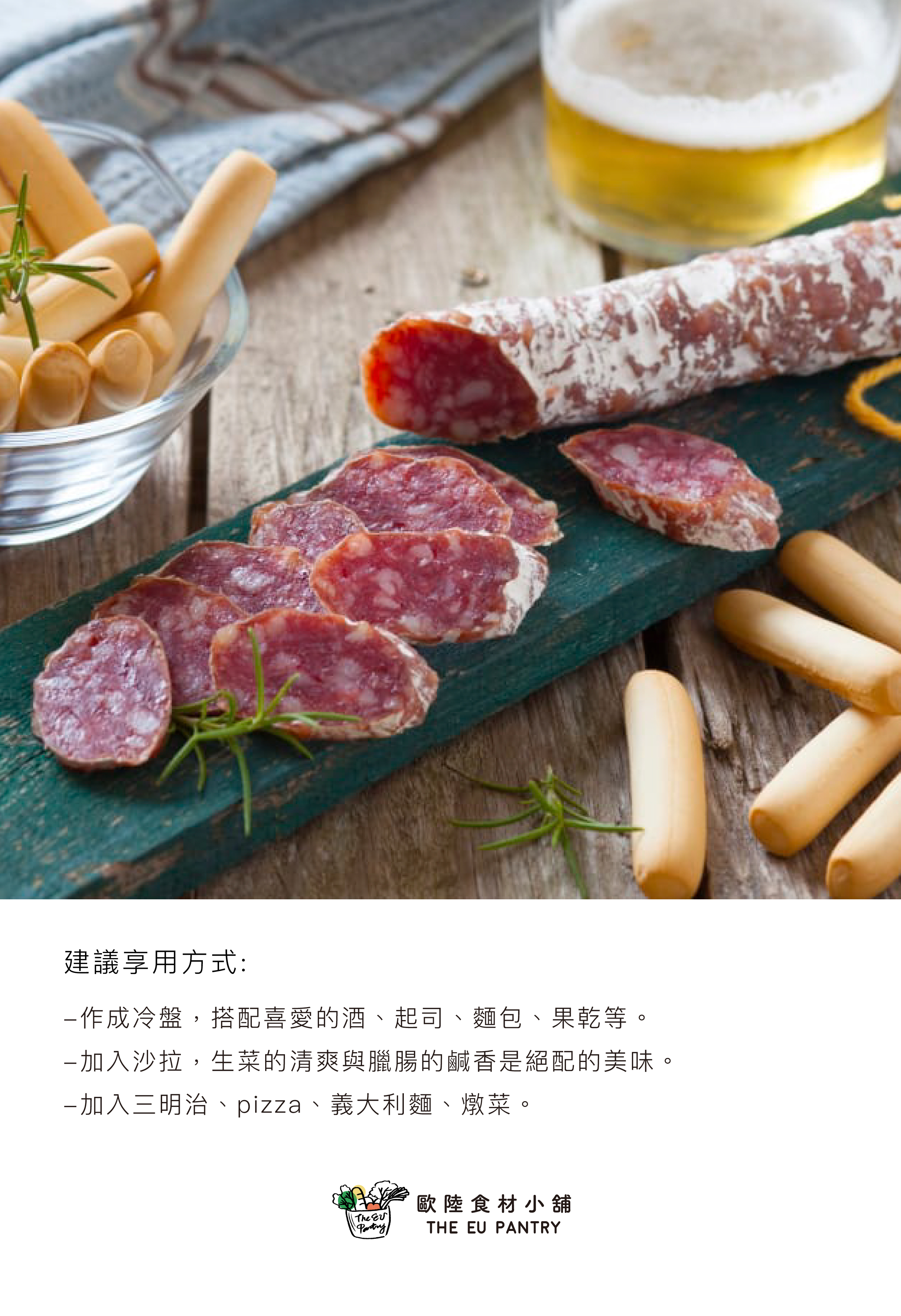 成份: 豬肉、豬背脂、乳糖、鹽、發酵劑、葡萄糖、辛香料、焦磷酸鹽、硝酸鉀