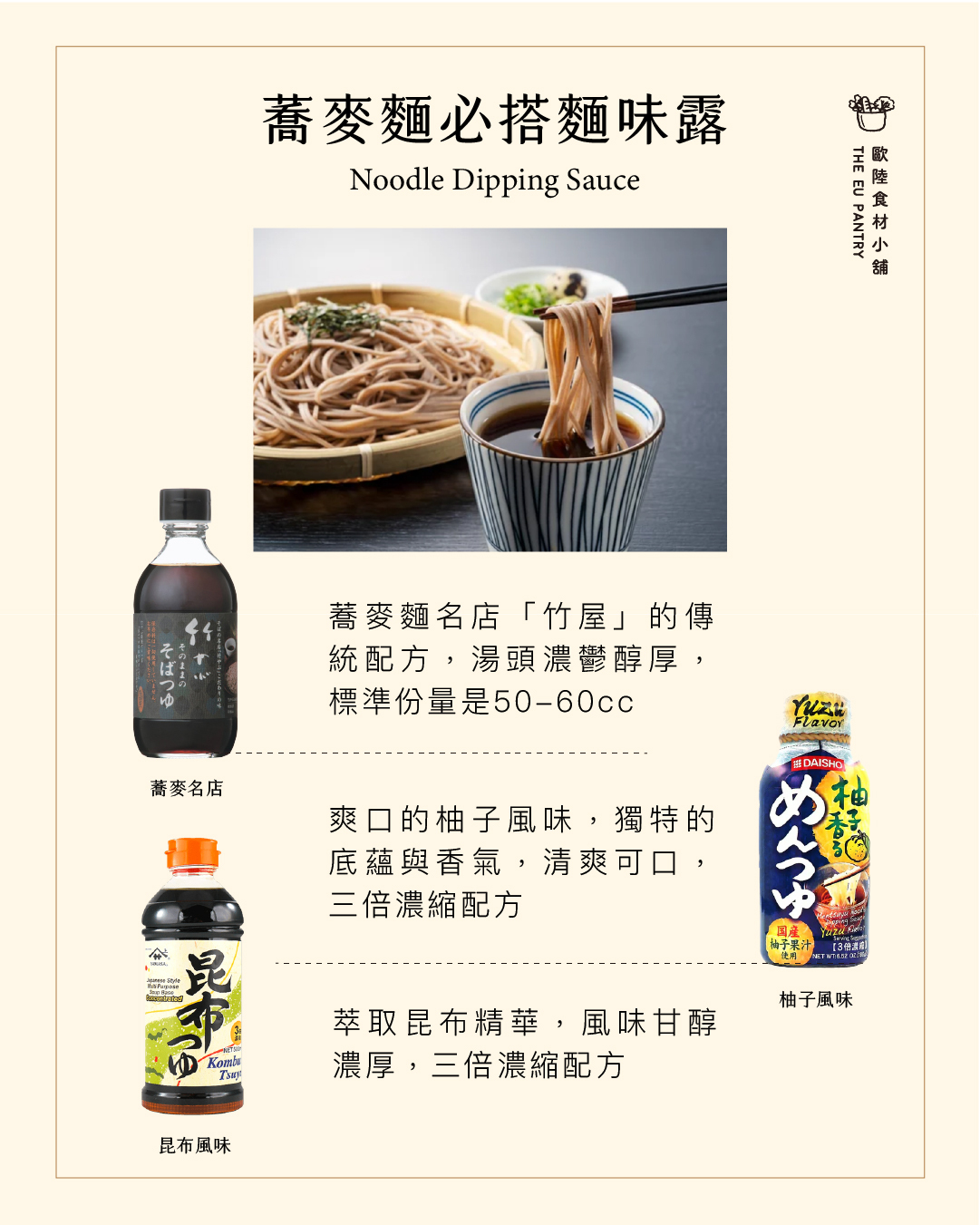 成分:醬油(大豆、小麥、食鹽)、鰹魚片高湯(鰹魚萃取物、食鹽、水)、味醂(糯米、粳米、米麹菌、食用酒精、果糖葡糖液糖)、砂糖、鰹魚片