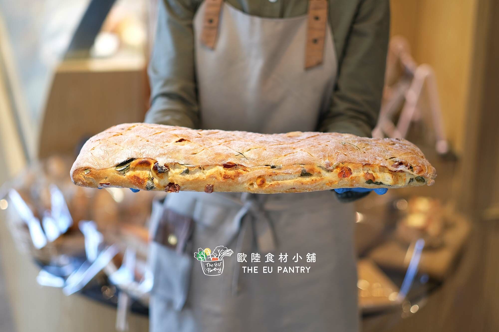 歐陸小舖的明星商品,可以品嘗到日曬番茄乾的甘甜與羅勒香氣,再搭配上濃郁的起司,完美融合三種風味,麵包體Q彈濕潤,越嚼越香