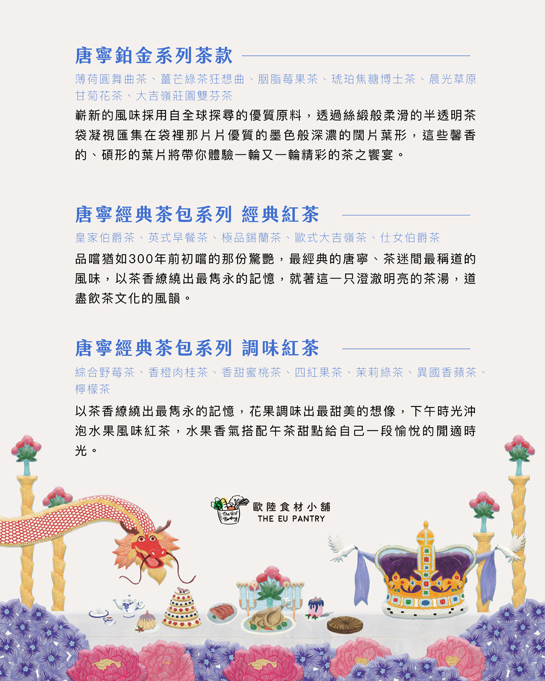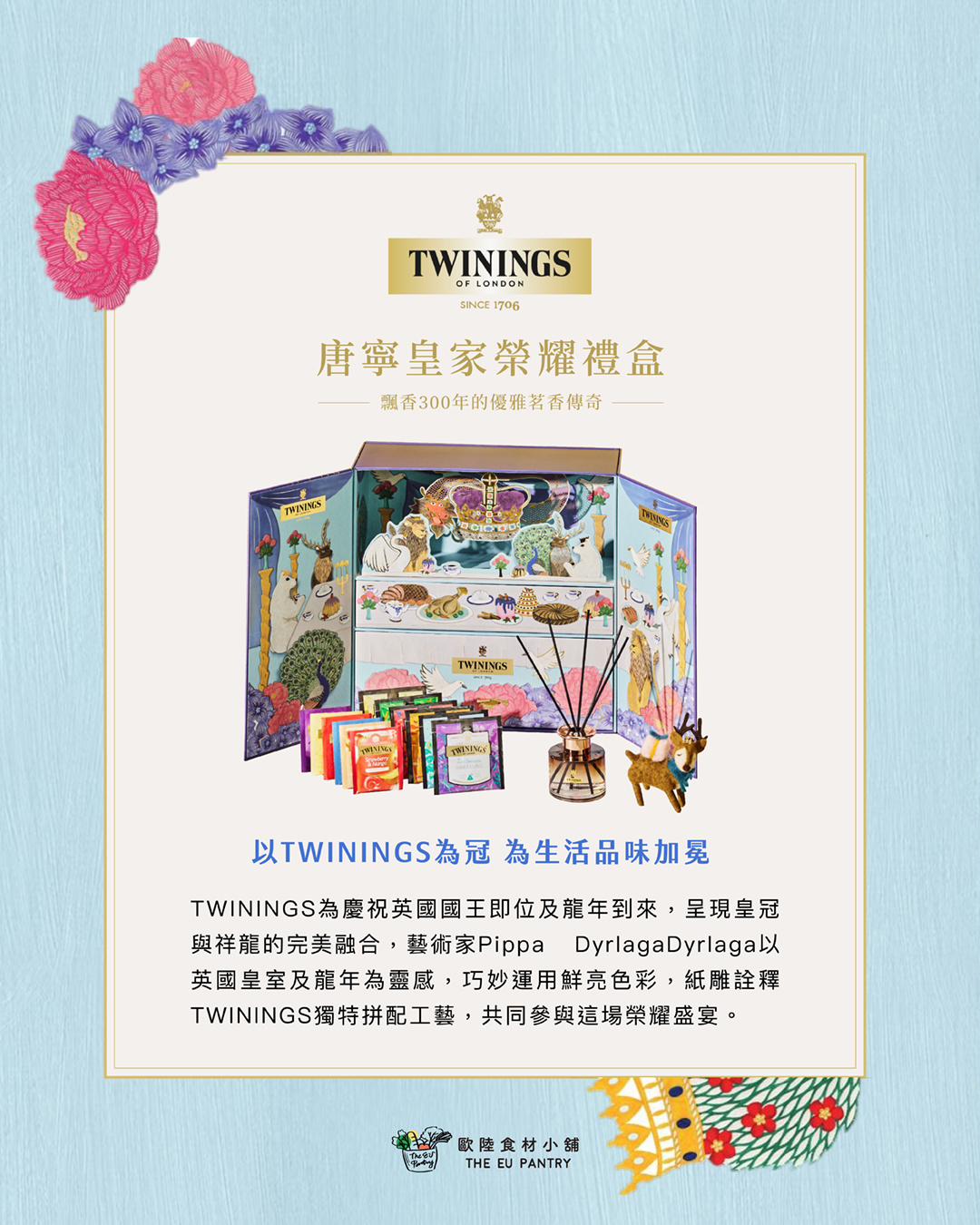 唐寧茶特別邀請英國紙雕術家Pippa Dyrlaga,以她薄如蟬翼的絕美紙雕工藝,創作出皇室冬季歡慶派對,透過栩栩如生象徵皇室意象的動物,花卉與盛宴完整演繹出TWININGS 唐寧三世紀以來如皇室尊榮的工藝美學
